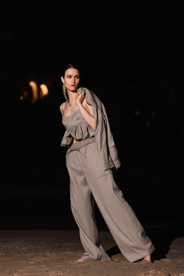 Flowing silhouettes and structured forms intertwine, echoing the balance of power and grace. Each piece is a dreamscape of textures and movement, a tribute to fluidity and strength.